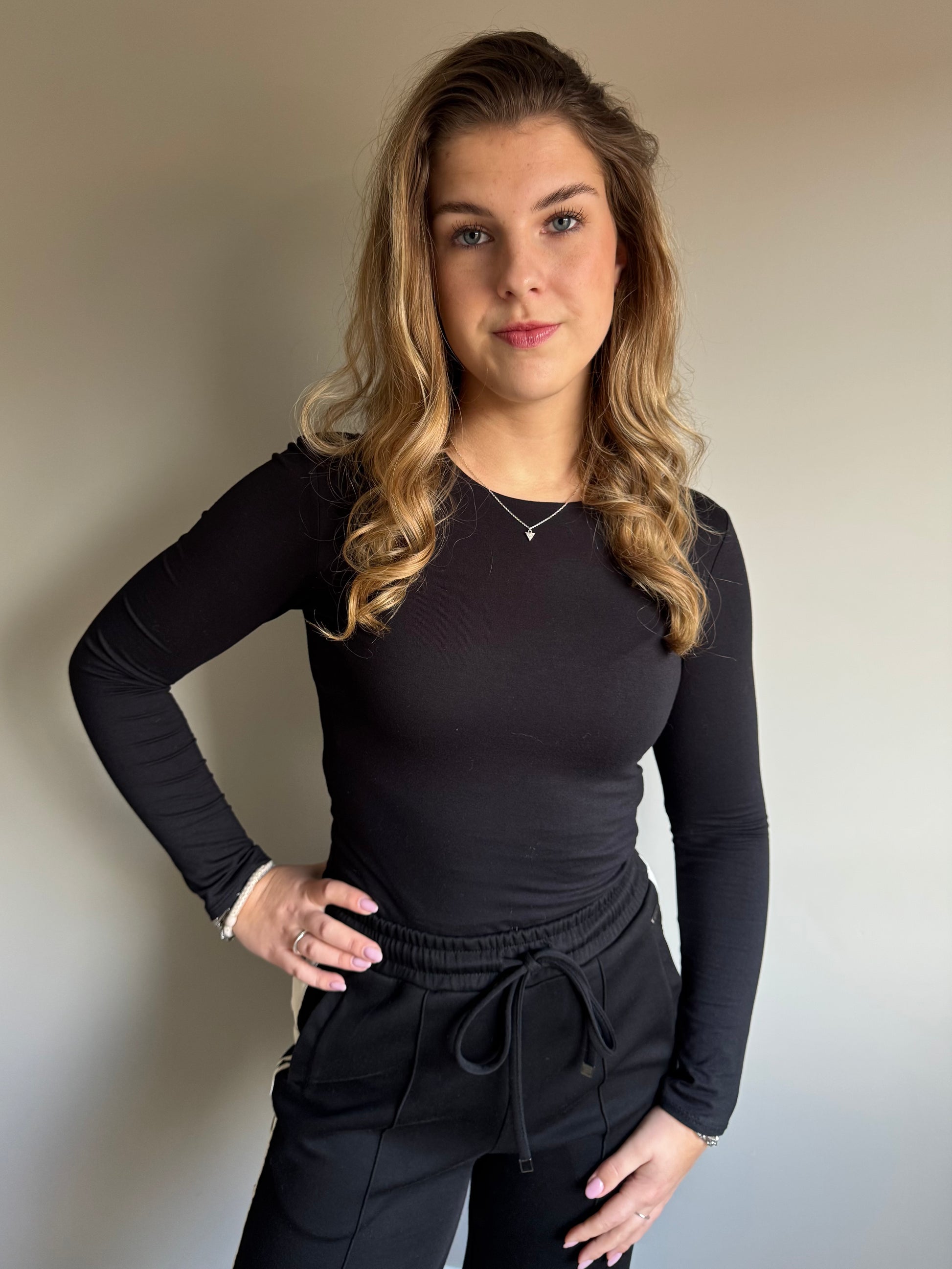 De Roos basic top is een onmisbare toevoeging aan je garderobe! Deze top met lange mouwen en een ronde halslijn is perfect als veelzijdige basic die bij elke outfit past. Hij heeft de ideale lengte en is gemaakt van een zachte, comfortabele stof die fijn aanvoelt op de huid. Draag hem als basis onder een blazer, of combineer hem met de Skye broek voor een moeiteloze, stijlvolle look. Een goede basic zoals de Roos top is essentieel om jouw outfit helemaal af te maken!